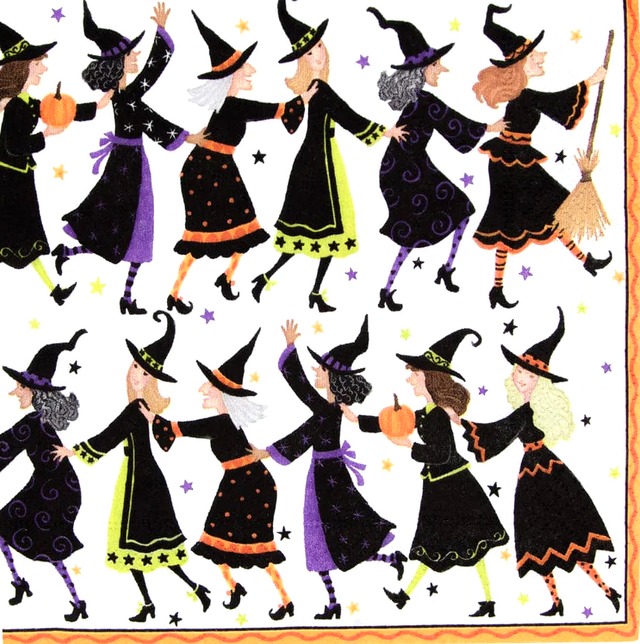 Caspari/カスパリのペーパーナプキン バラ売り デザイン:Witches Conga Line カラー:ホワイト サイズ:33cm×33cm(ランチサイズ) 内容:バラ売り1枚 素材:ペーパー100% 生産国:Made in Germany