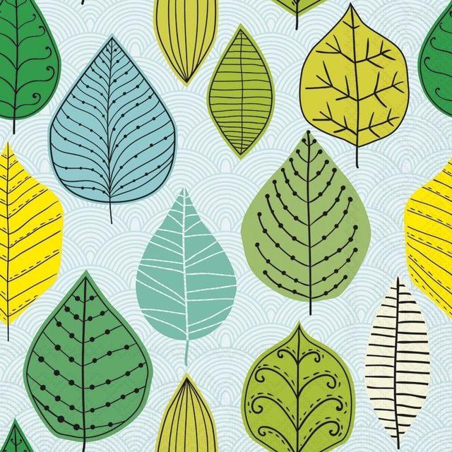 予約商品|1月上旬入荷|2026春夏【Ambiente】バラ売り2枚 ランチサイズ ペーパーナプキン Leaf veins グリーン