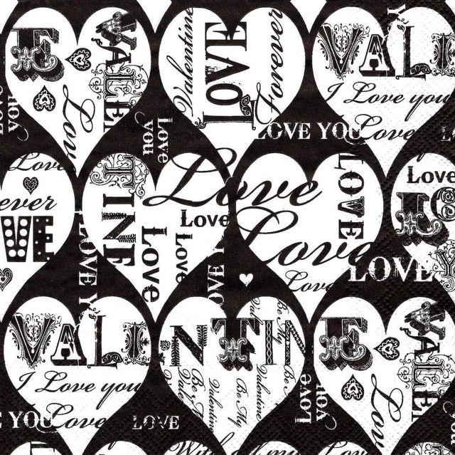 IHR/イアのペーパーナプキン バラ売り デザイン:Forever Love カラー:ブラックxホワイト サイズ:33cm×33cm(ランチサイズ) 内容:バラ売り2枚 素材:ペーパー100% 生産国:Made in Germany paperletter