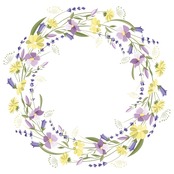 【Daisy】バラ売り2枚 ランチサイズ ペーパーナプキン Subtle Wreath with Wildflowers and Leaves ホワイト
