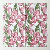 【Daisy】バラ売り2枚 ランチサイズ ペーパーナプキン Pink Tulips ピンクxグリーンxパールシルバー