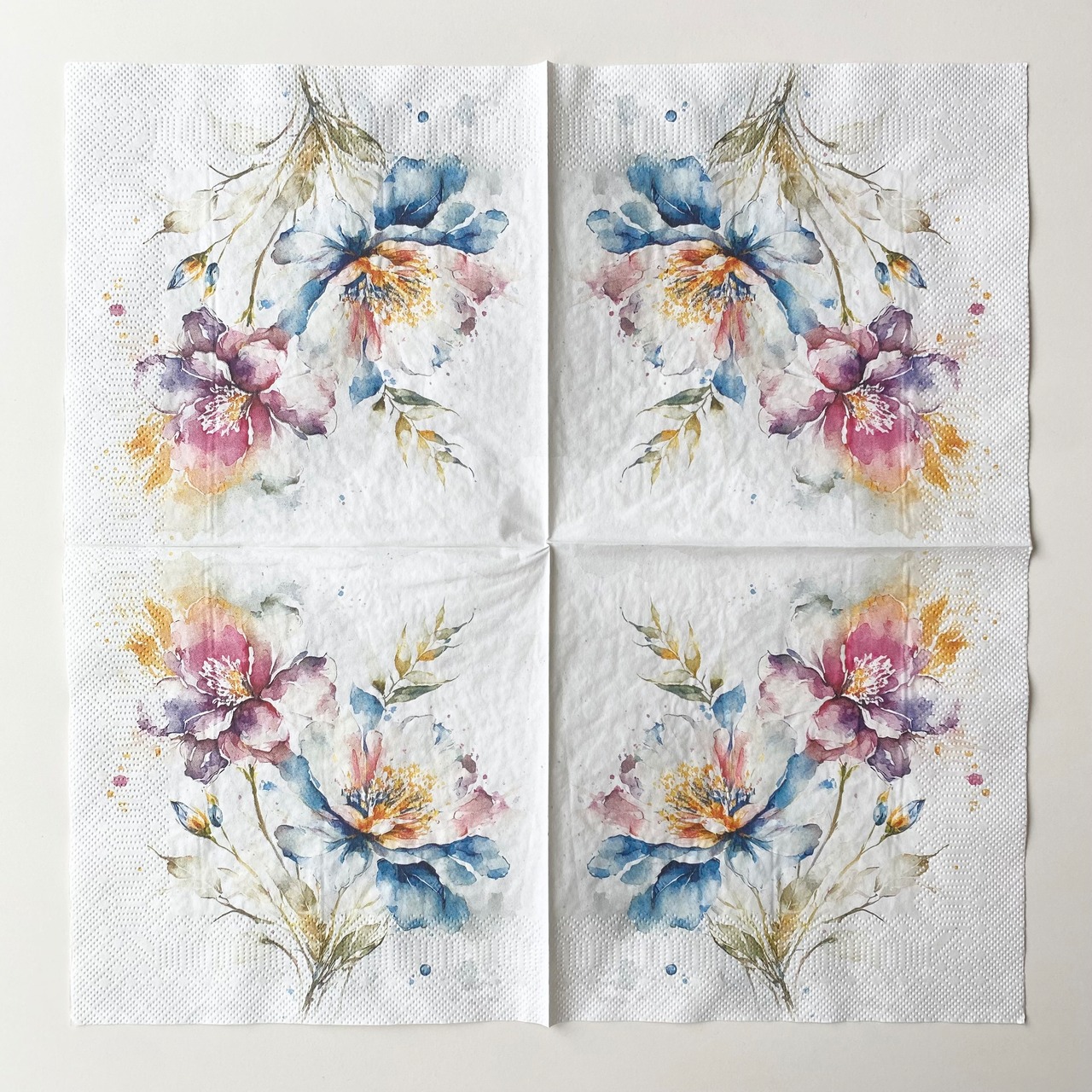 【Daisy】バラ売り2枚 ランチサイズ ペーパーナプキン Watercolour Pastel Flowers ライトグレー