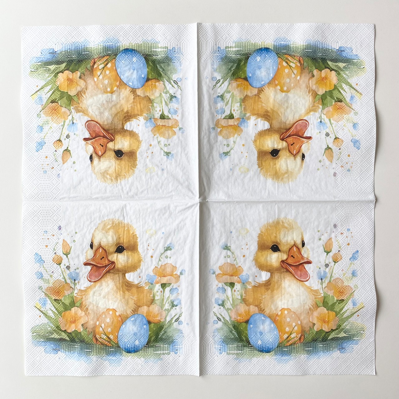 【Daisy】バラ売り2枚 ランチサイズ ペーパーナプキン Watercolour Cute Baby Duck ホワイト