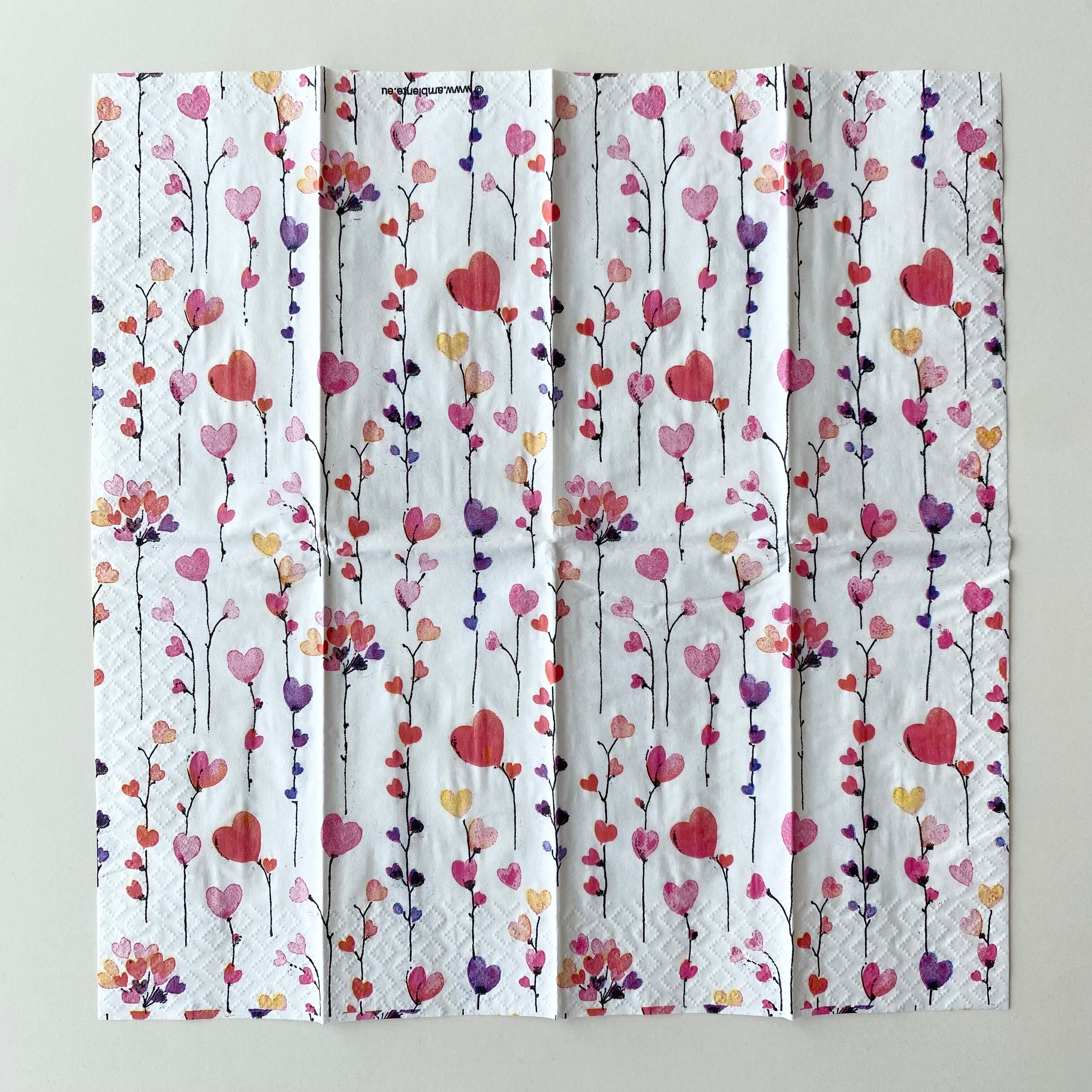 【Ambiente】バラ売り2枚 ポケットサイズ ペーパーナプキン Hearts garlands ホワイト