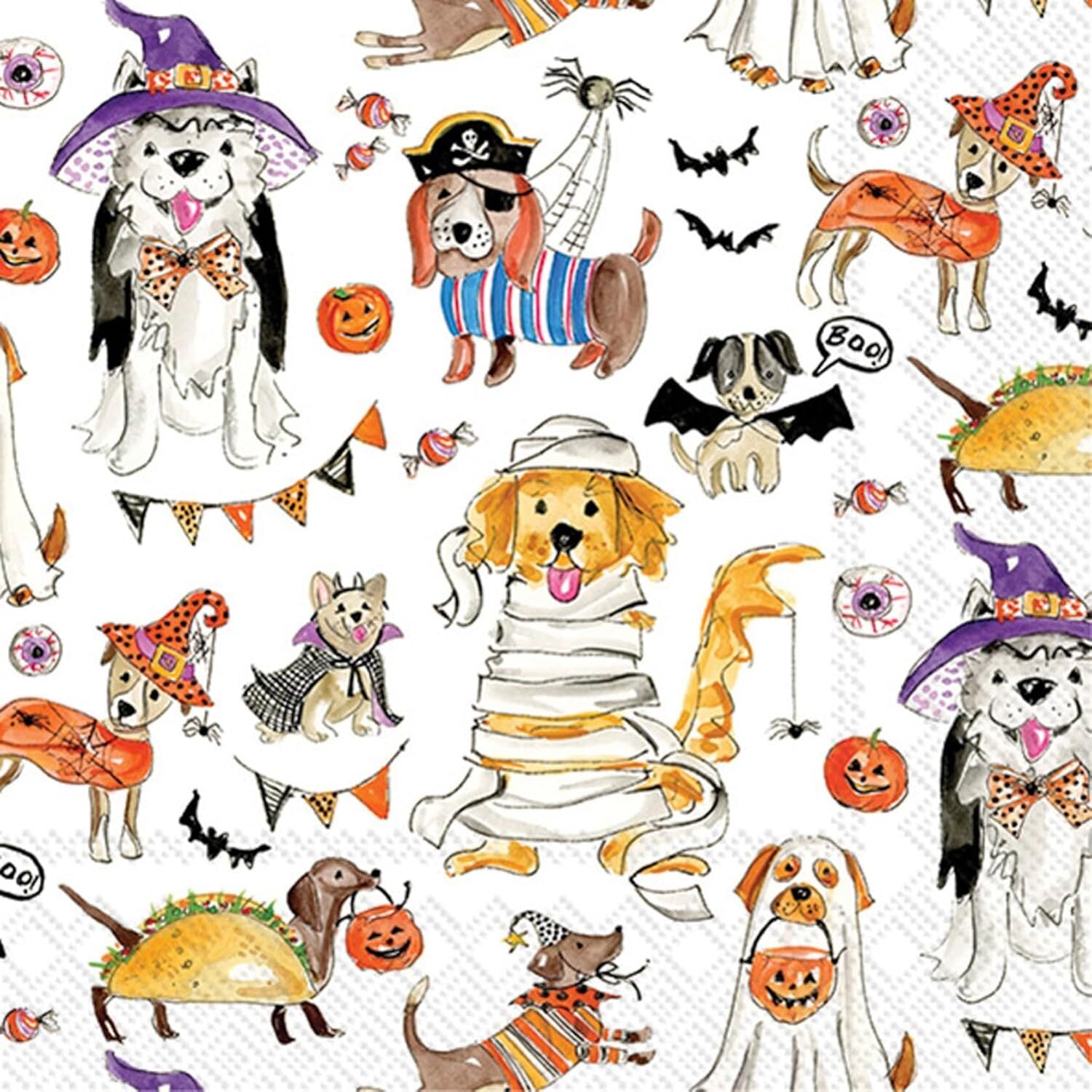 【Rosanne Beck】バラ売り2枚 カクテルサイズ ペーパーナプキン Halloween Dogs ホワイト