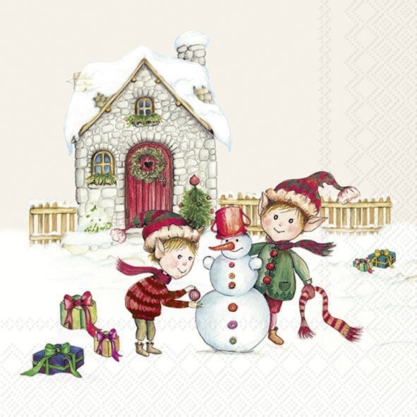 2025秋冬【IHR】バラ売り2枚 カクテルサイズ ペーパーナプキン ELVES AT WORK クリーム
