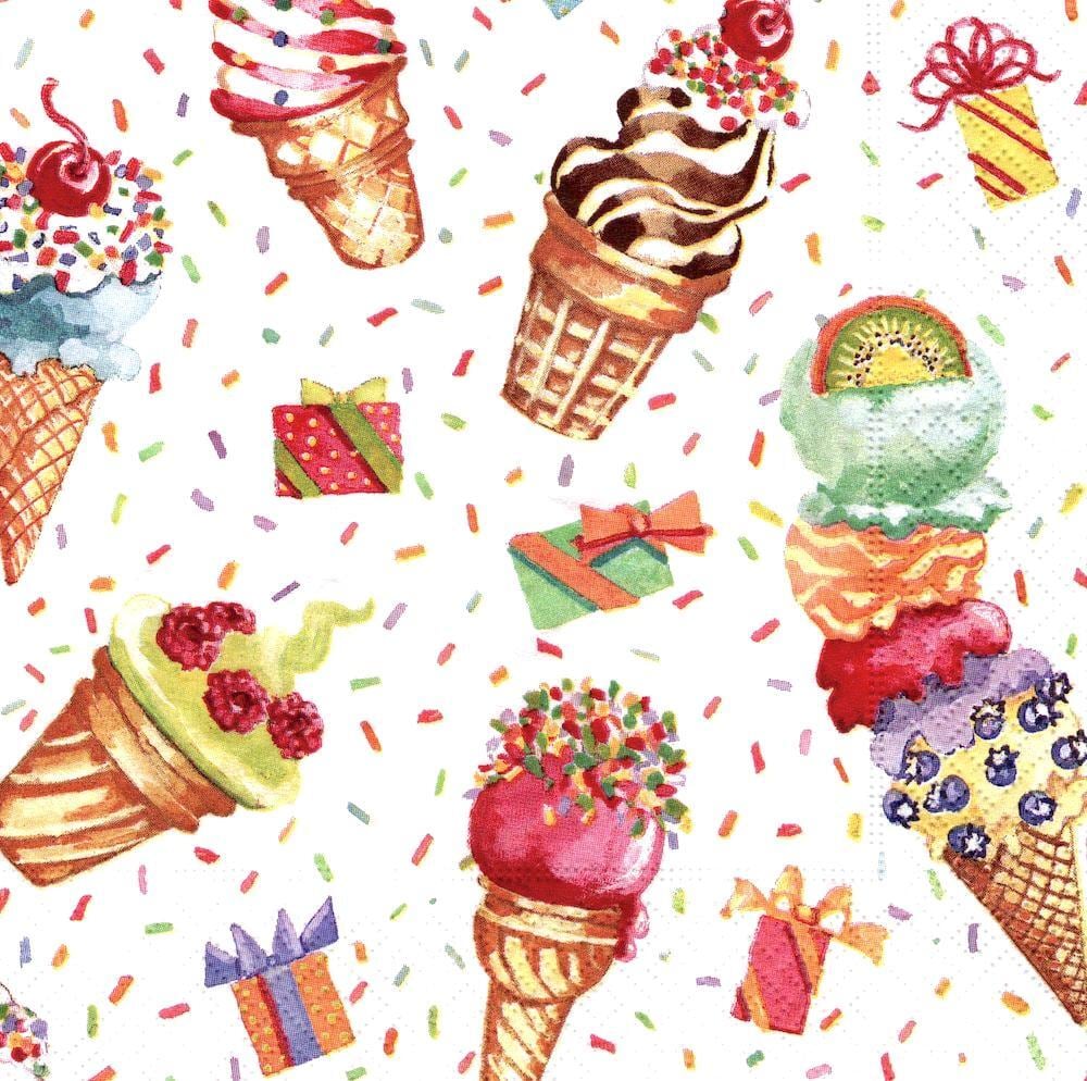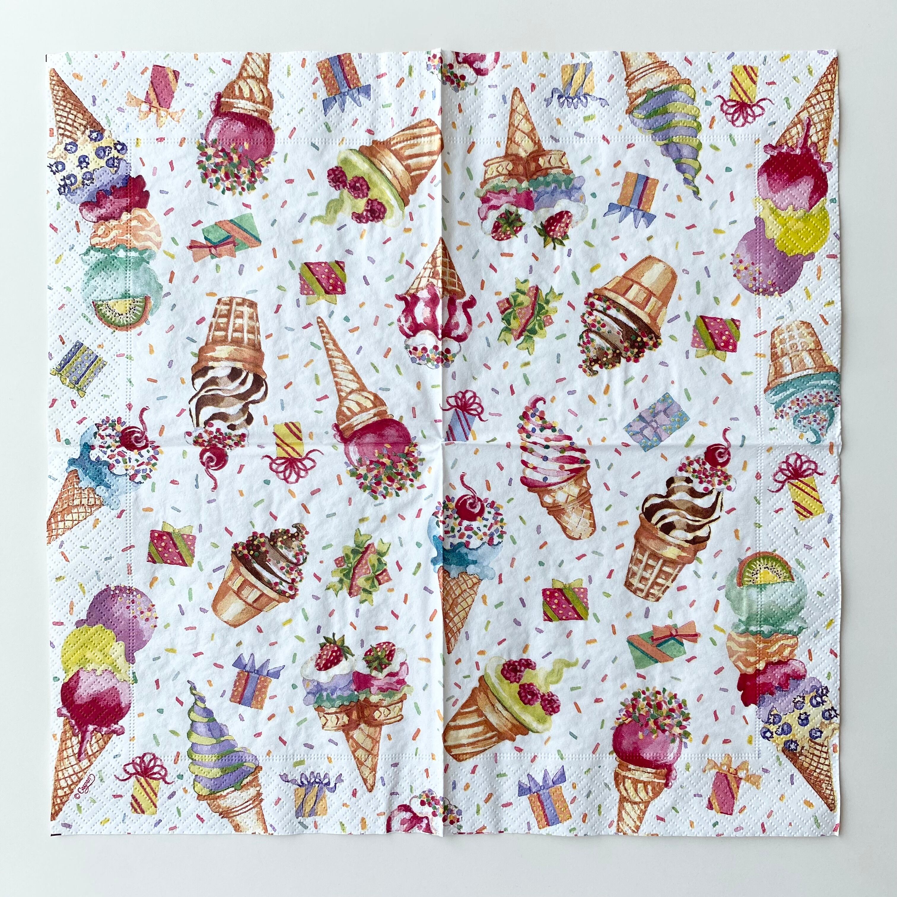 【Caspari】バラ売り1枚 ランチサイズ ペーパーナプキン Ice Cream Party ホワイト