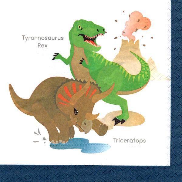 【Amscan】バラ売り2枚 ランチサイズ ペーパーナプキン Happy Dinosaur ホワイト