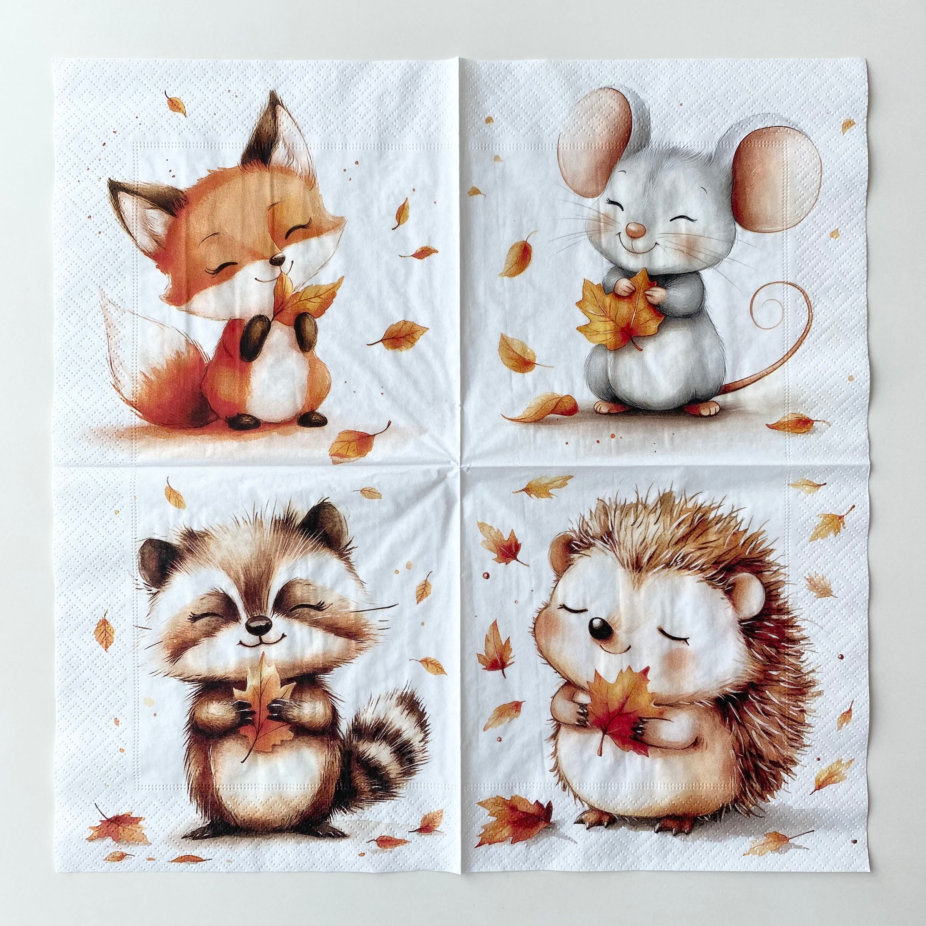 2025秋冬【Serviettenshop】バラ売り2枚 ランチサイズ ペーパーナプキン Lovely Autumn Animals ホワイト