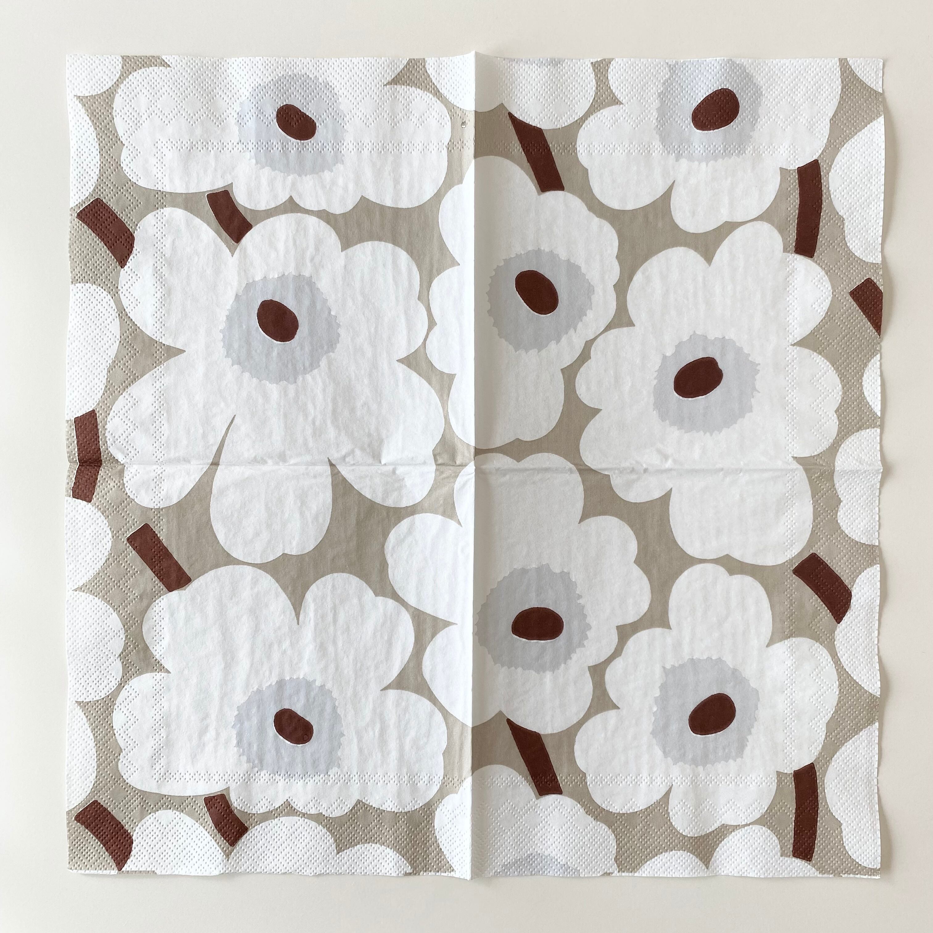 【marimekko】バラ売り2枚 ランチサイズ ペーパーナプキン UNIKKO ホワイト×リネン