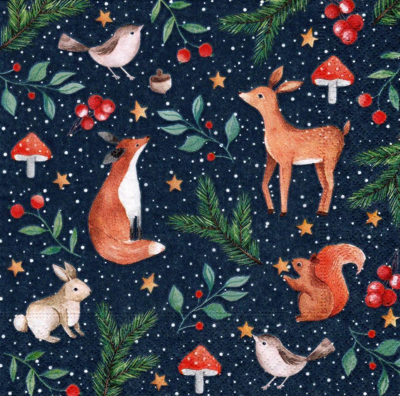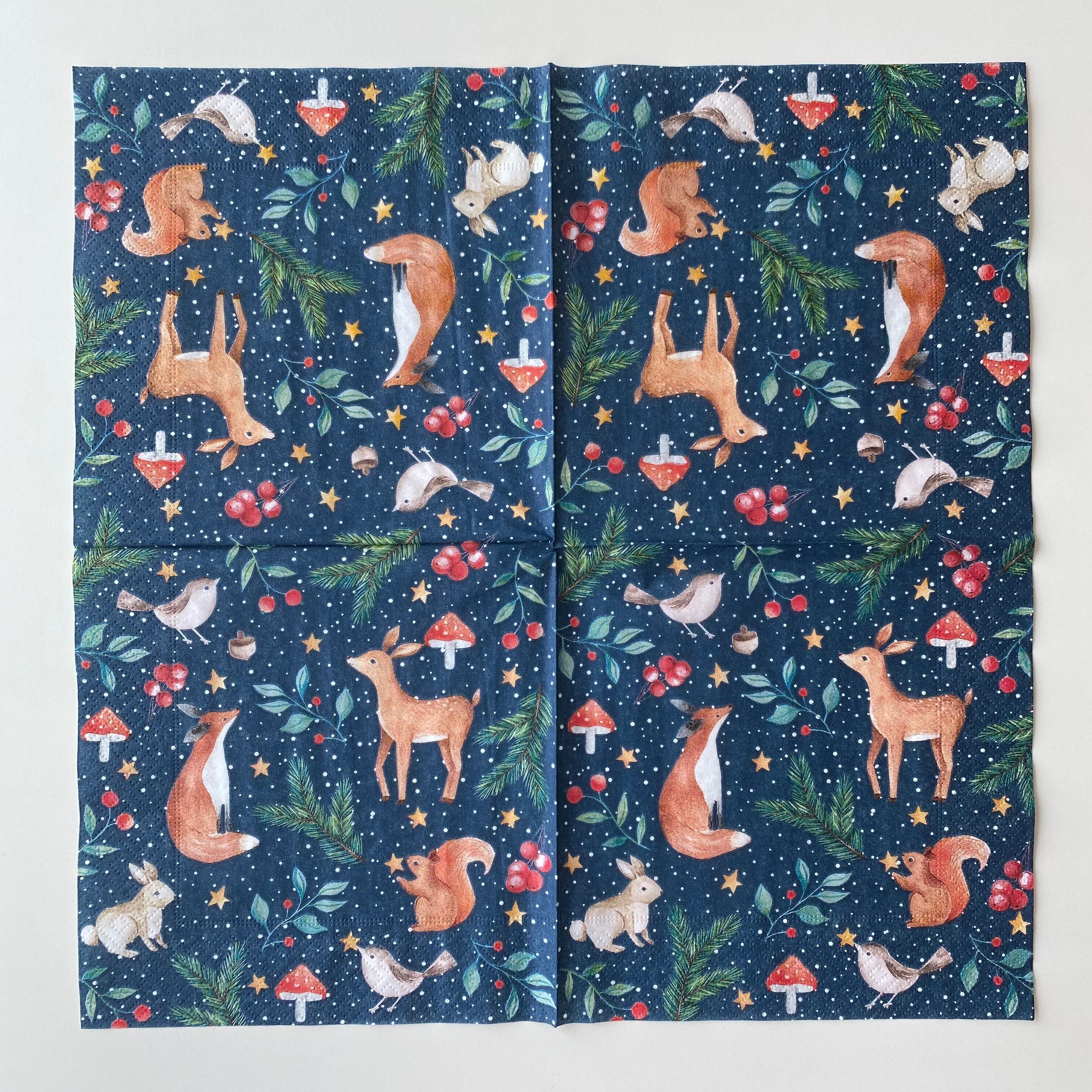 【Atelier】バラ売り2枚 ランチサイズ ペーパーナプキン Winternight ダークブルー