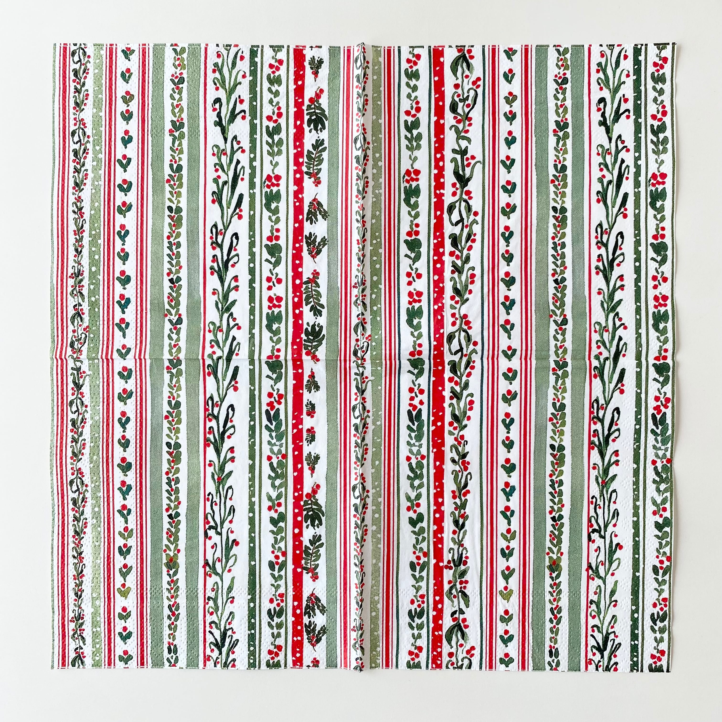 イギリス【glick】バラ売り2枚 ランチサイズ ペーパーナプキン Linear Vines グリーンxレッド Luxury Christmas Napkins