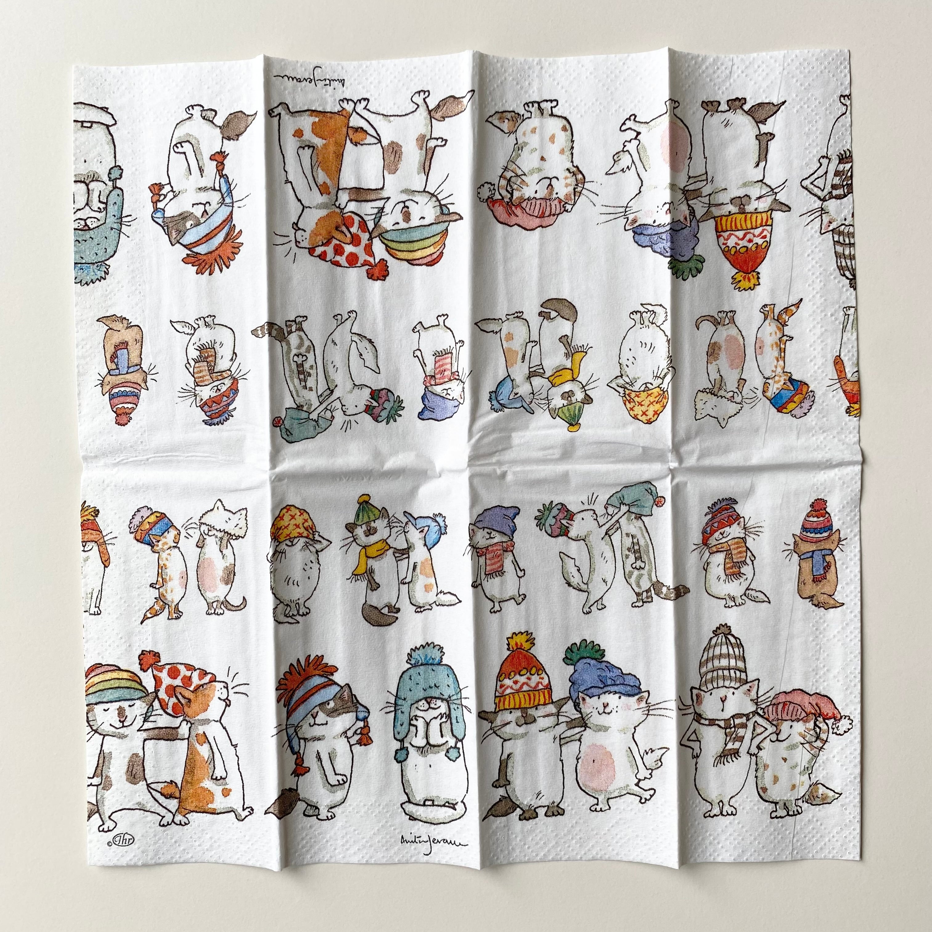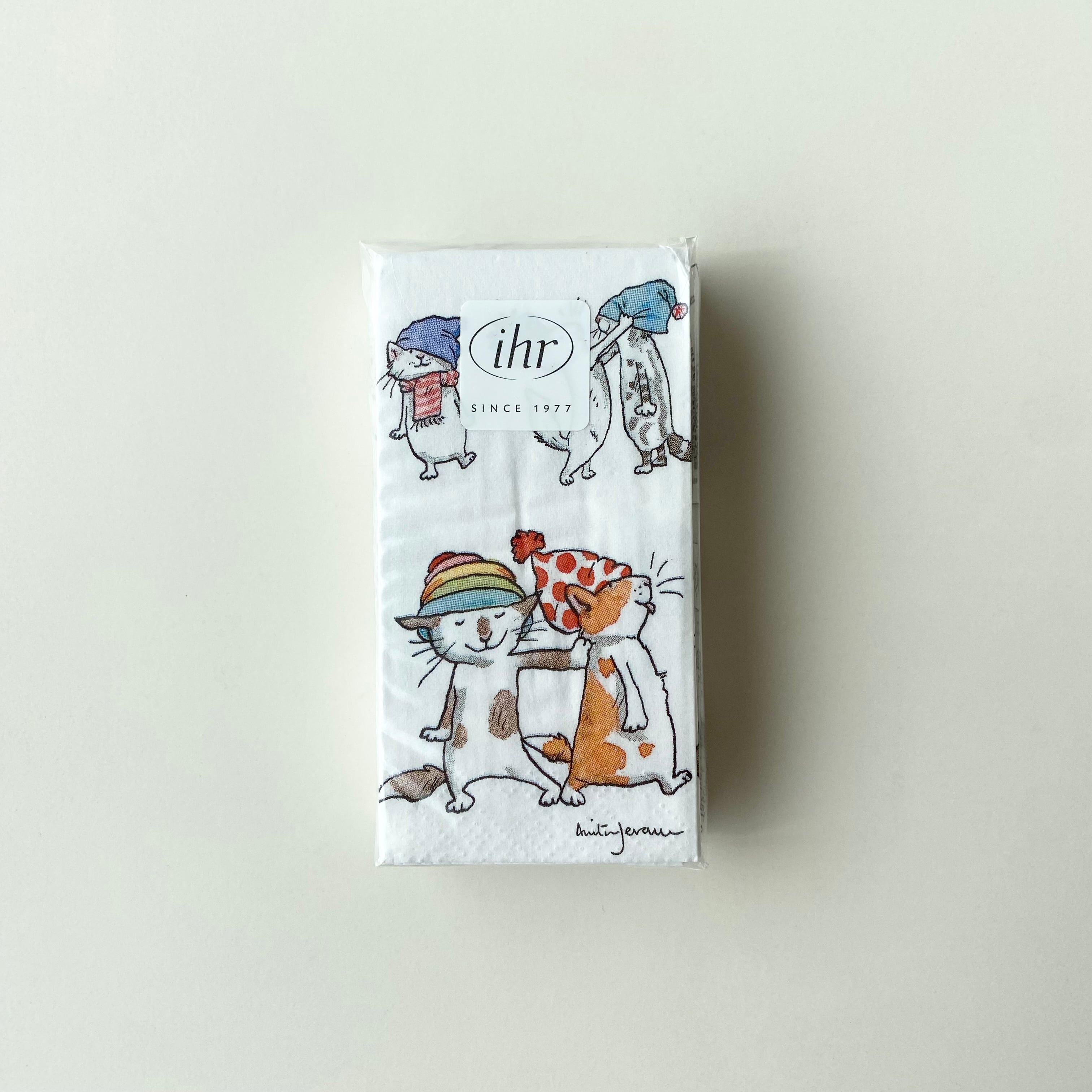 【IHR】ポケットサイズ ペーパーナプキン CATS WITH HATS ホワイト Anita Jeram 10枚入り