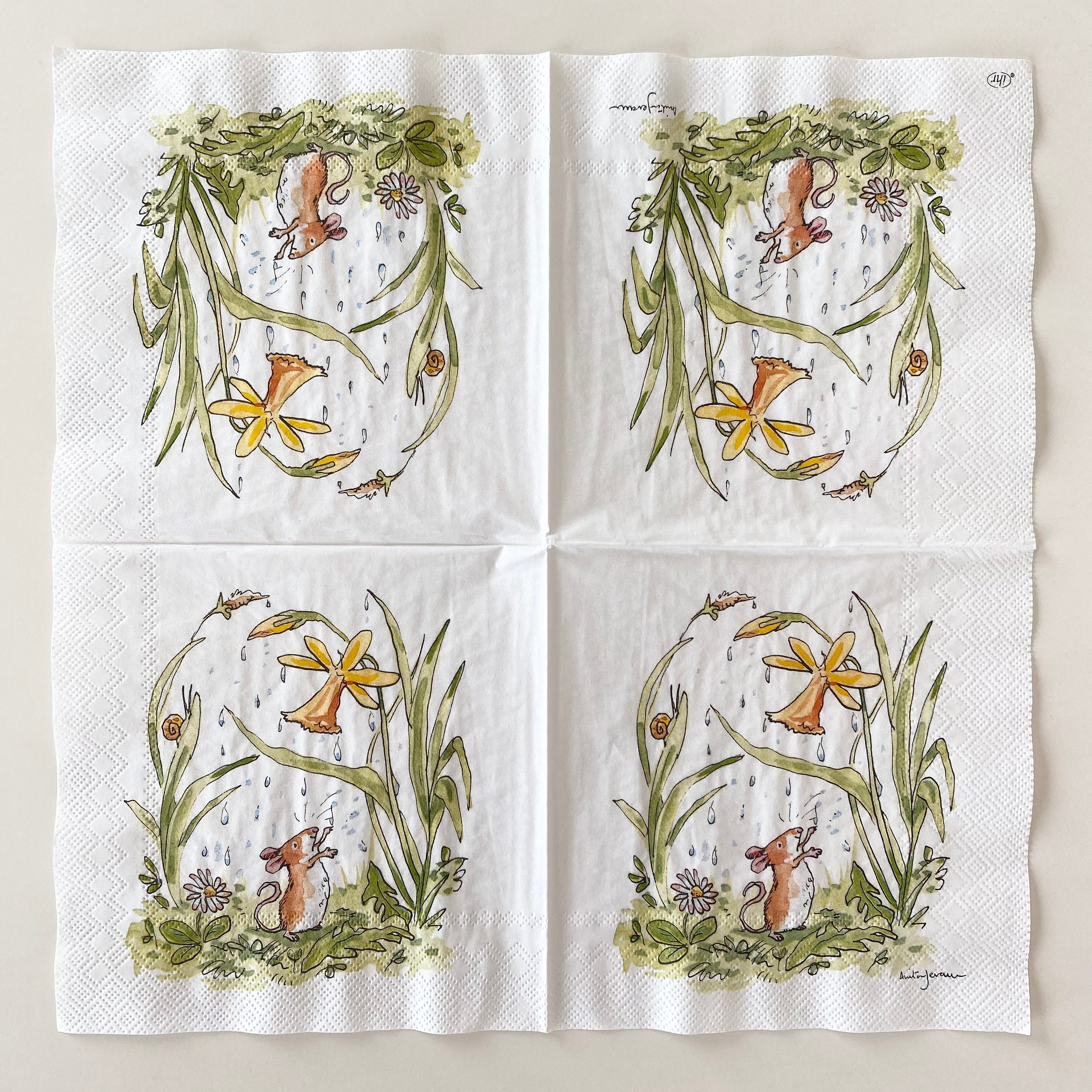 2025春夏【IHR】ランチサイズ ペーパーナプキン APRIL SHOWER ホワイト Anita Jeram 20枚入り