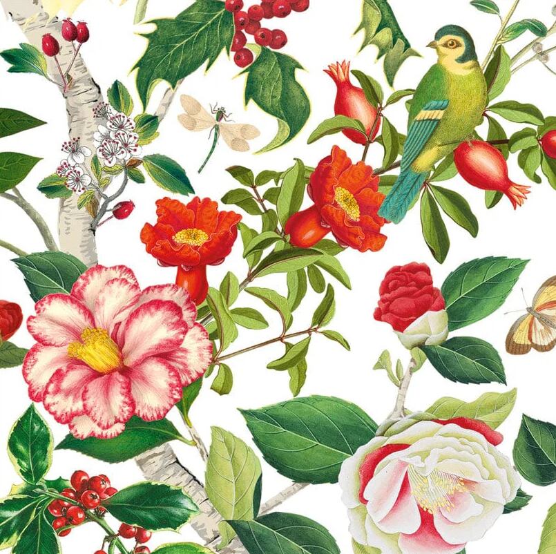 2025秋冬【Caspari】バラ売り1枚 ランチサイズ ペーパーナプキン Christmas Chinoiserie ホワイト