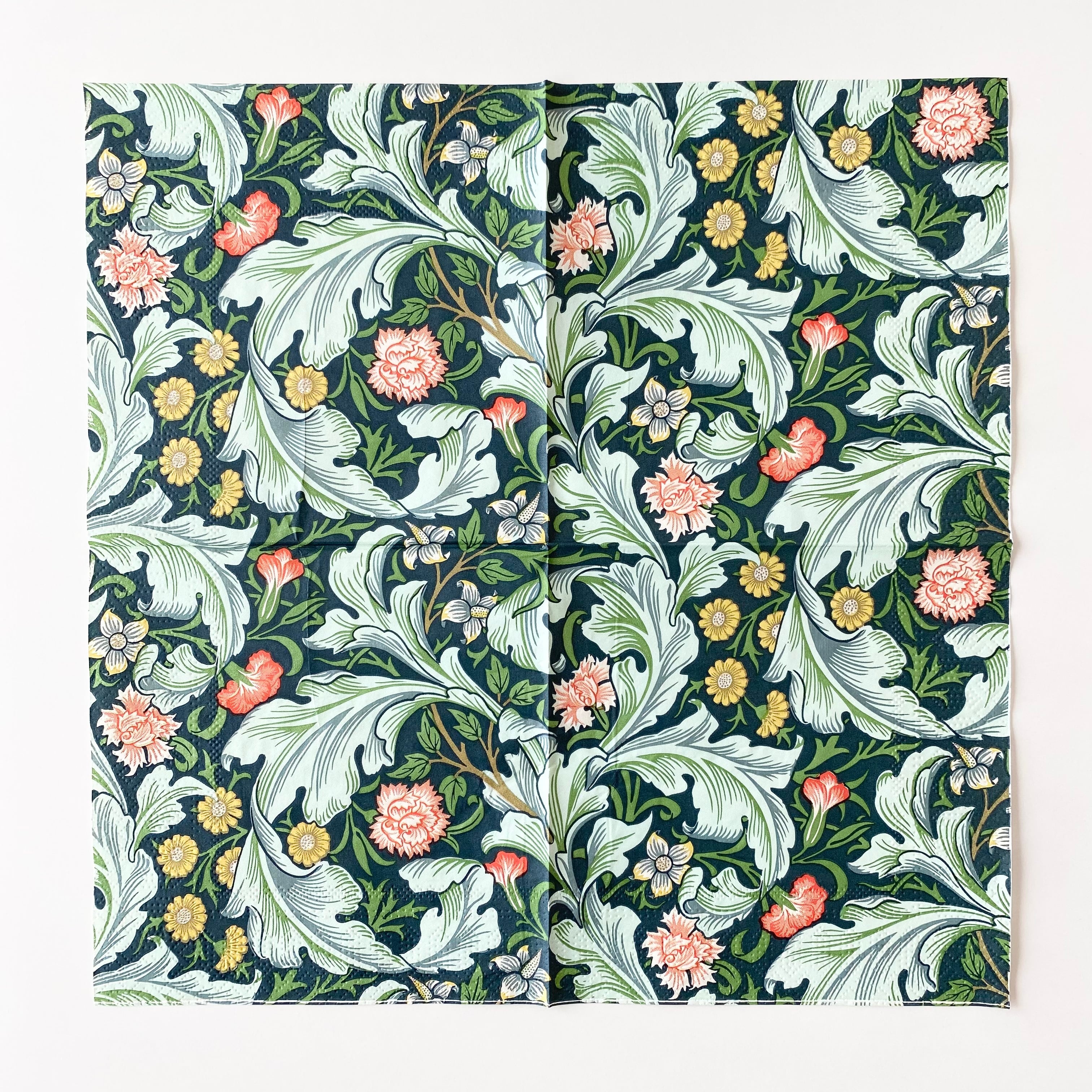 イギリス【Museums & Galleries】バラ売り2枚 ランチサイズ ペーパーナプキン Leicester Wallpaper ダークグリーン the V&A Museum ウィリアム・モリス Morris & Co. J.H.ダール