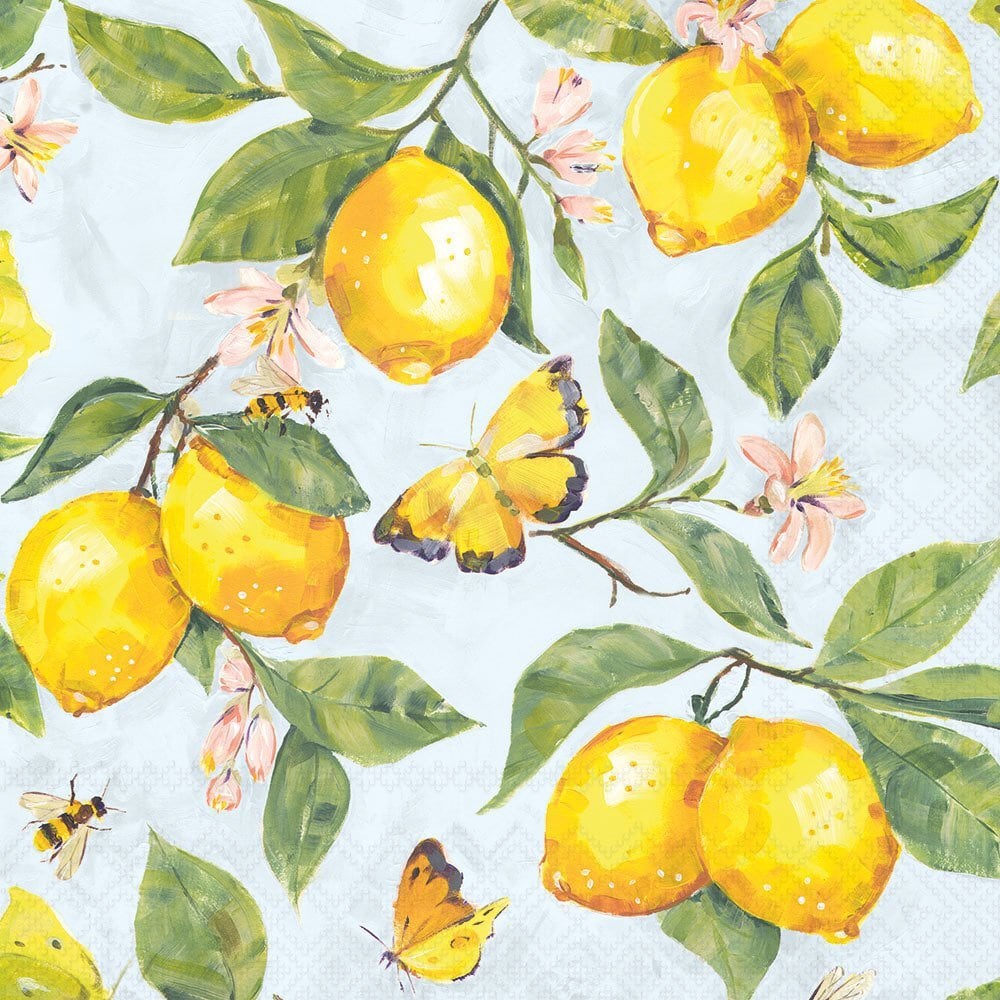 予約商品|12月下旬入荷|2026春夏【Ambiente】バラ売り2枚 ランチサイズ ペーパーナプキン Fresh Lemons ブルー