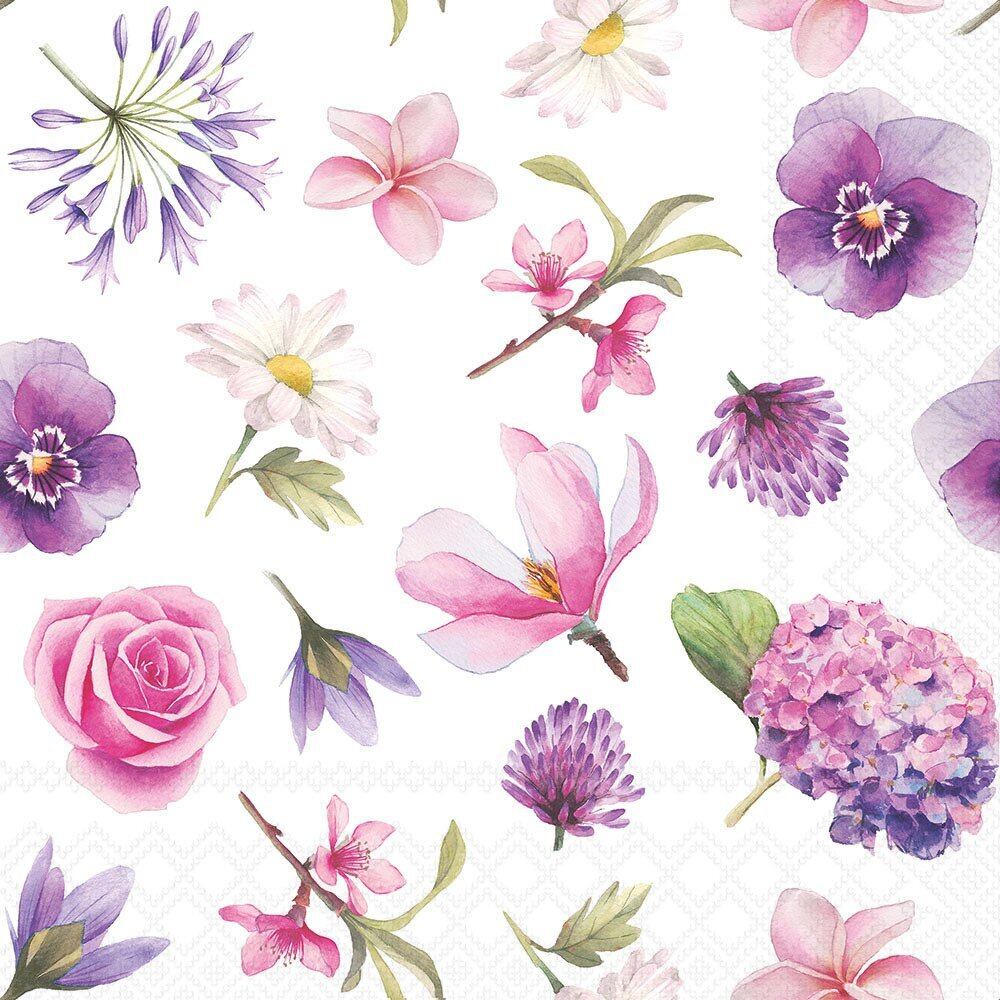 予約商品|12月下旬入荷|2026春夏【Ambiente】バラ売り2枚 ランチサイズ ペーパーナプキン Flower heads ホワイト