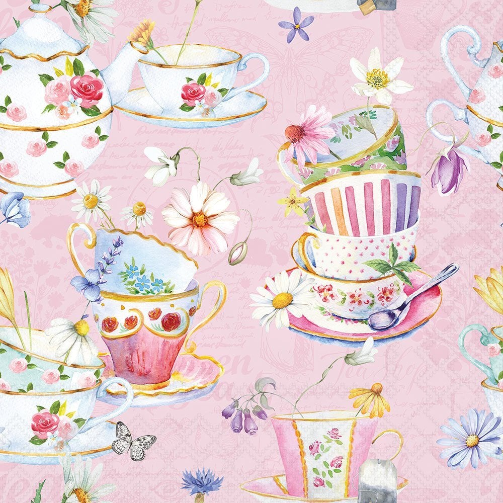 予約商品|1月上旬入荷|2026春夏【Ambiente】バラ売り2枚 カクテルサイズ ペーパーナプキン Tea cups ピンク