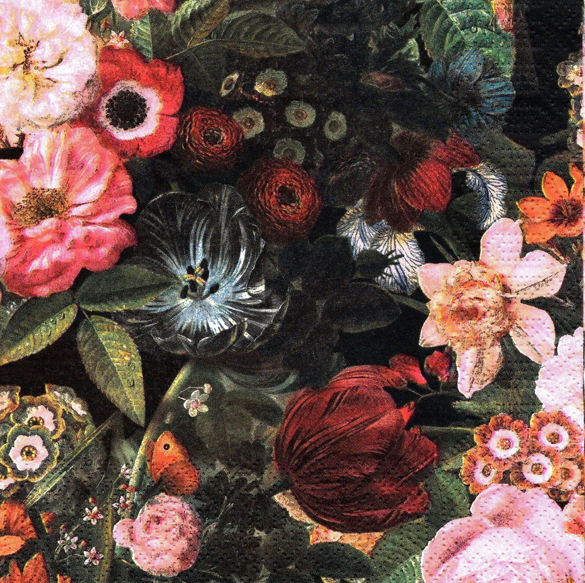 北欧【HEMTEX】バラ売り1枚 ランチサイズ ペーパーナプキン FIORENZA ブラック