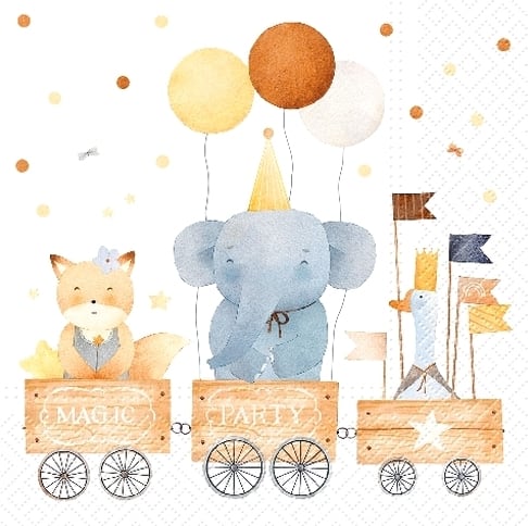 予約商品|2月上旬入荷|2026春夏【PAW】バラ売り2枚 ランチサイズ ペーパーナプキン Train of Joy ホワイト