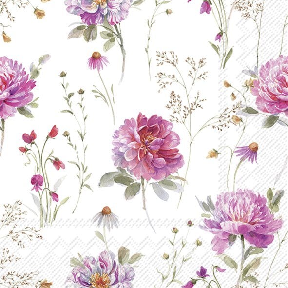 予約商品|3月下旬入荷|2026春夏【IHR】バラ売り2枚 ランチサイズ ペーパーナプキン PARTOUT DES FLEURS ホワイト