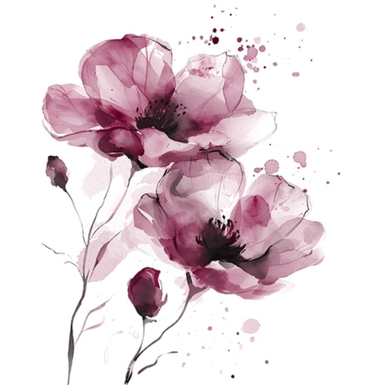 予約商品|3月下旬入荷【ti-flair】バラ売り2枚 ランチサイズ ペーパーナプキン Fiori Delicati ホワイトxバーガンディ