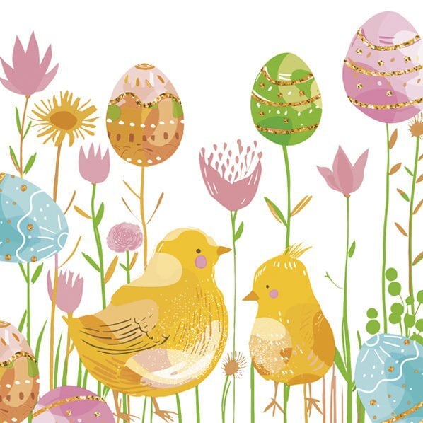 2026春夏【Daisy】バラ売り2枚 ランチサイズ ペーパーナプキン Graphic Chickens with Eggs Flowers ホワイト