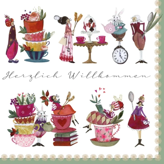 予約商品|4月上旬入荷|2026春夏【Gratz Verlag】バラ売り2枚 ランチサイズ ペーパーナプキン Teatime ホワイト