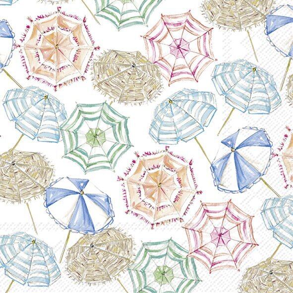 2026春夏【Rosanne Beck】ランチサイズ ペーパーナプキン CORAL UMBRELLA PATTERN ホワイト 20枚入り