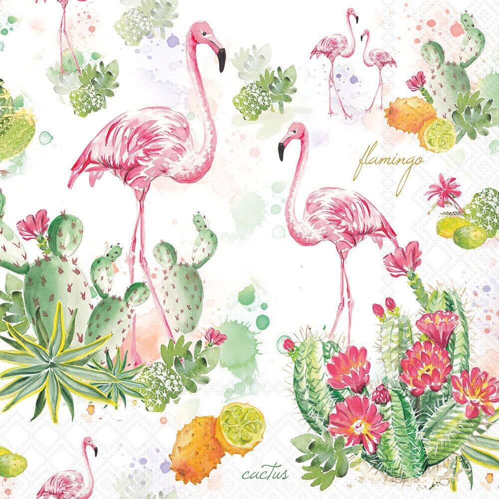 2026春夏【Ambiente】ランチサイズ ペーパーナプキン Flamingo and cactus ホワイト 20枚入り