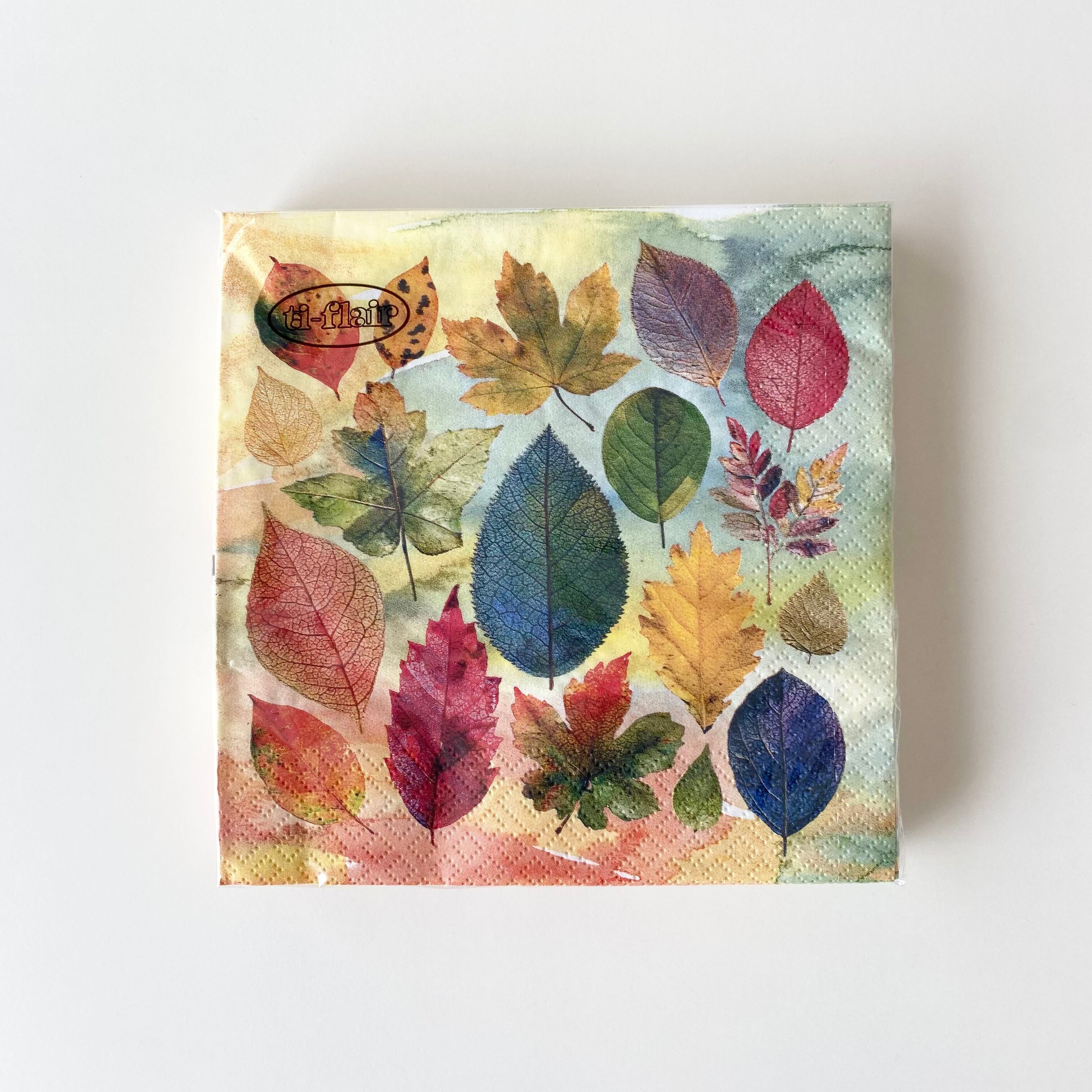 2026春夏【ti-flair】ランチサイズ ペーパーナプキン Pressed Autumn Leaves グリーンxオレンジ 20枚入り