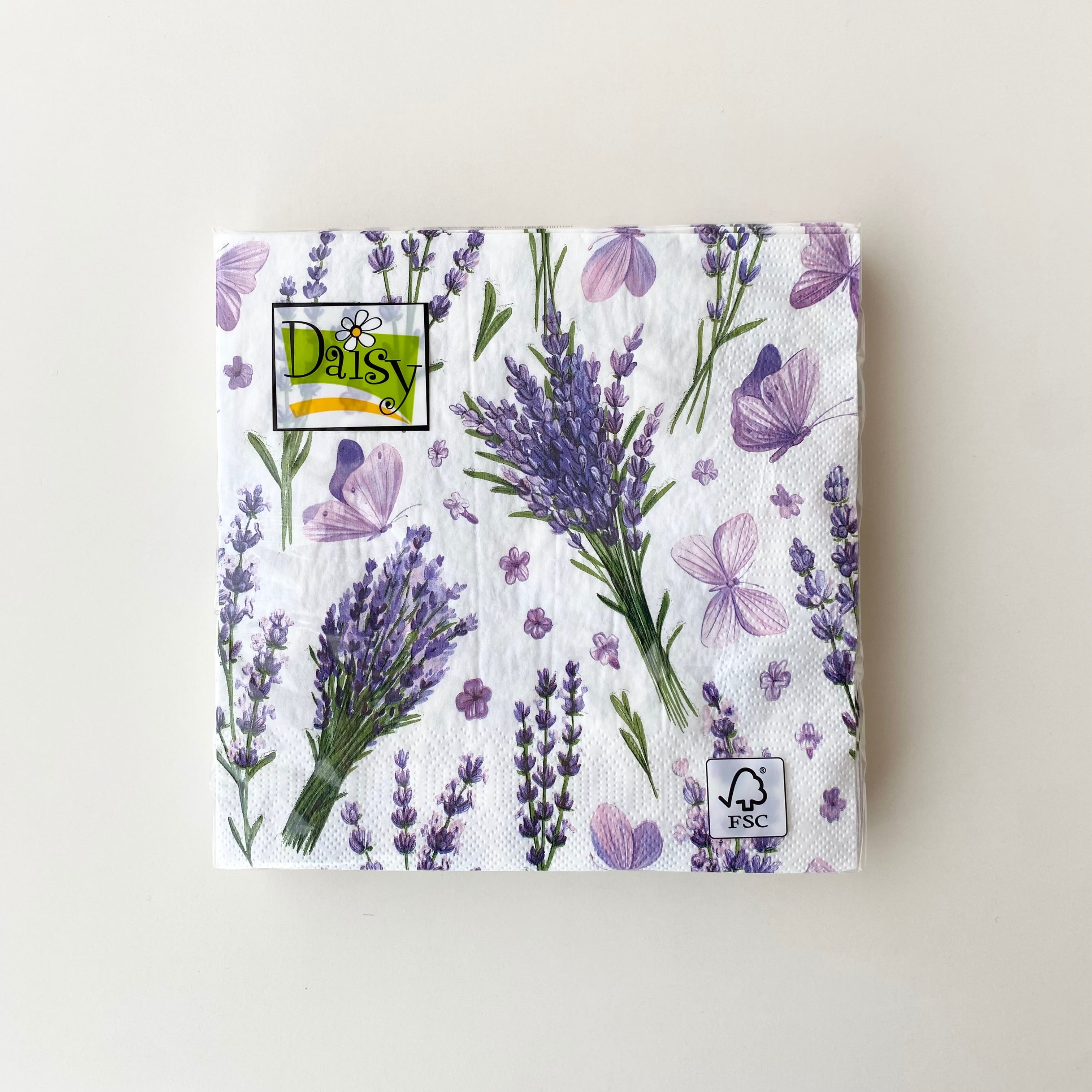 【Daisy】ランチサイズ ペーパーナプキン Lavender with Violet Butterflies ホワイト 20枚入り