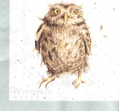 【Wrendale Designs】バラ売り1枚 カクテルサイズ ペーパーナプキン WHAT A HOOT ホワイト