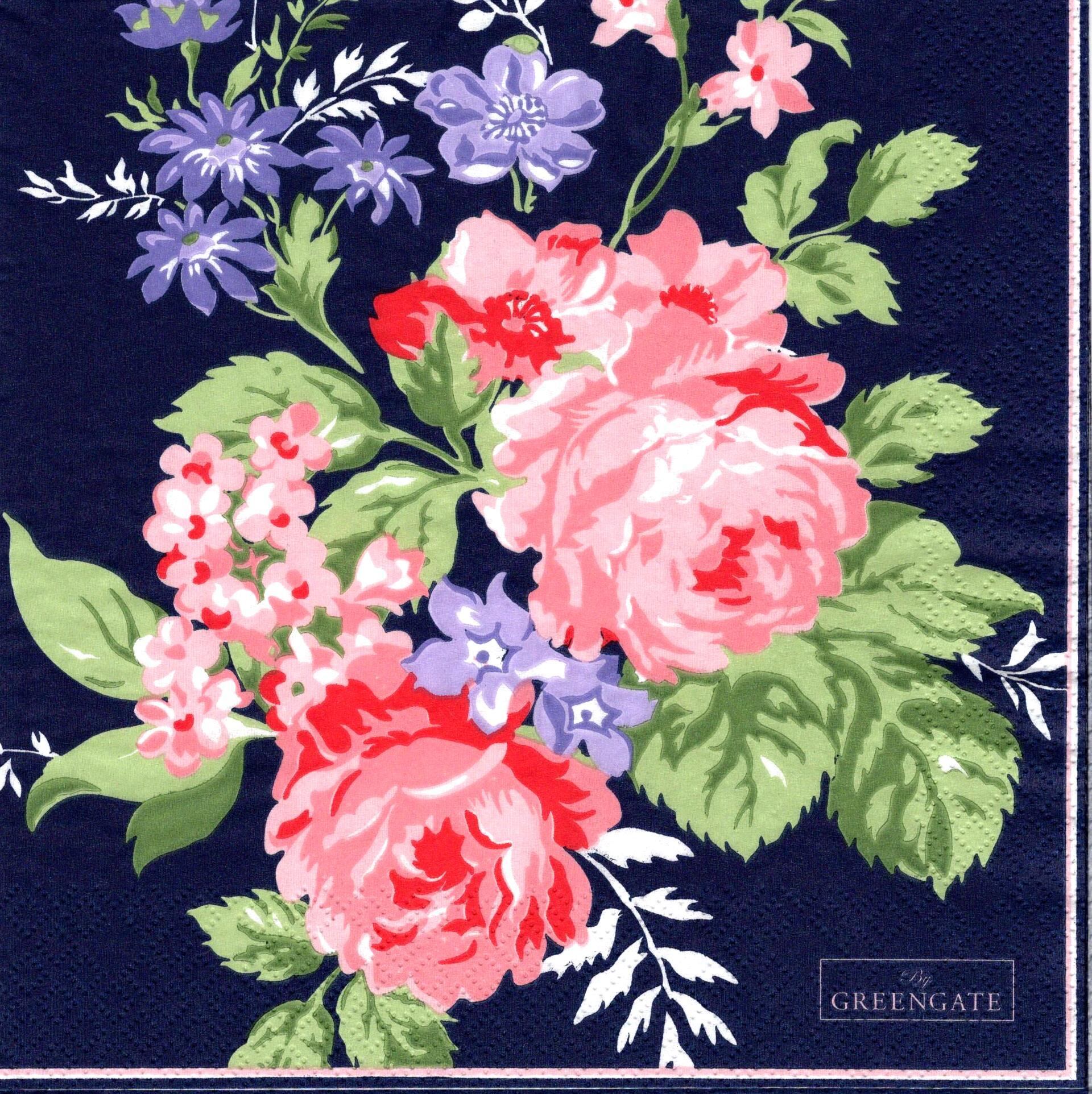 北欧【GreenGate】バラ売り1枚 ランチサイズ ペーパーナプキン ROSE ダークブルー