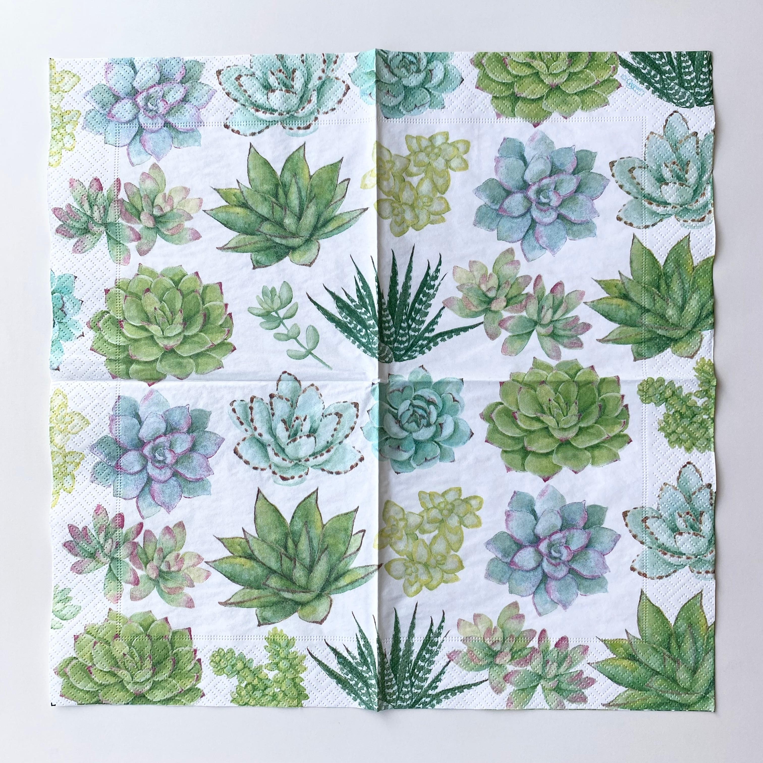 【Caspari】バラ売り1枚 ランチサイズ ペーパーナプキン SUCCULENTS ホワイト