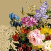【Ambiente】バラ売り2枚 ランチサイズ ペーパーナプキン STILL LIFE BOUQUET ゴールド