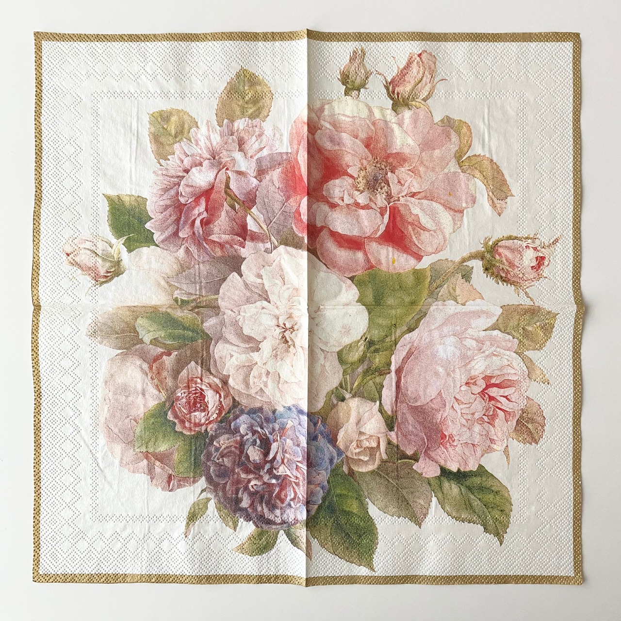 【IHR】バラ売り2枚 ランチサイズ ペーパーナプキン FAIRY ROSE pearlized パール V&A