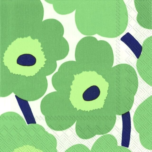 【marimekko】バラ売り2枚 カクテルサイズ ペーパーナプキン UNIKKO ホワイト×グリーン
