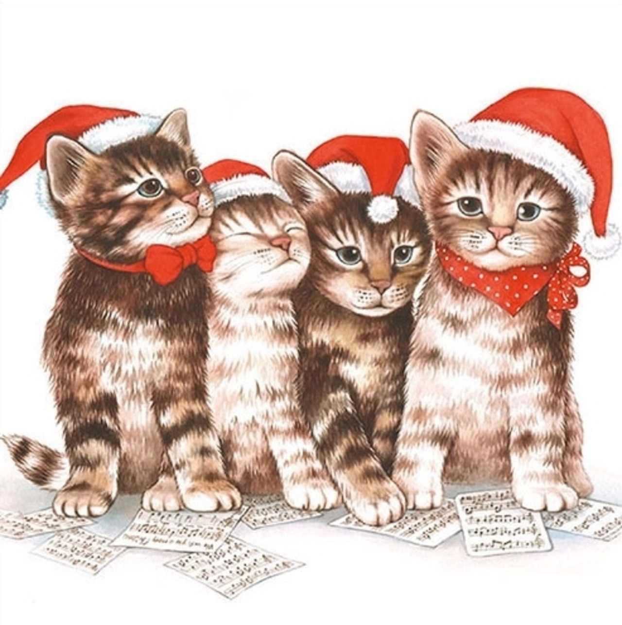 【Ambiente】バラ売り2枚 ランチサイズ ペーパーナプキン SINGING CATS ホワイト