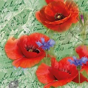 【Ambiente】バラ売り2枚 ランチサイズ ペーパーナプキン PAINTED POPPIES グリーン
