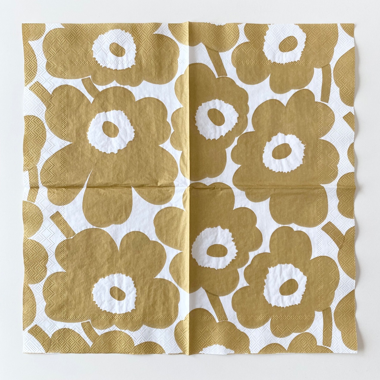 【marimekko】バラ売り2枚 カクテルサイズ ペーパーナプキン UNIKKO ホワイト×ゴールド