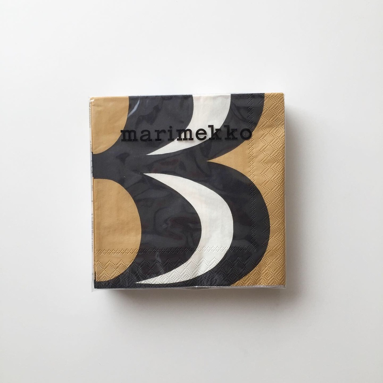 【marimekko】カクテルサイズ ペーパーナプキン KAIVO ブラック×クリーム 20枚入り