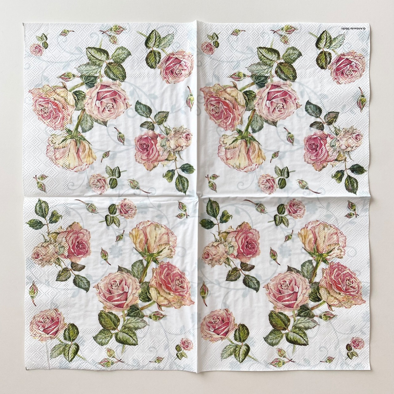 【Ambiente】バラ売り2枚 ランチサイズ ペーパーナプキン Rosie ホワイト
