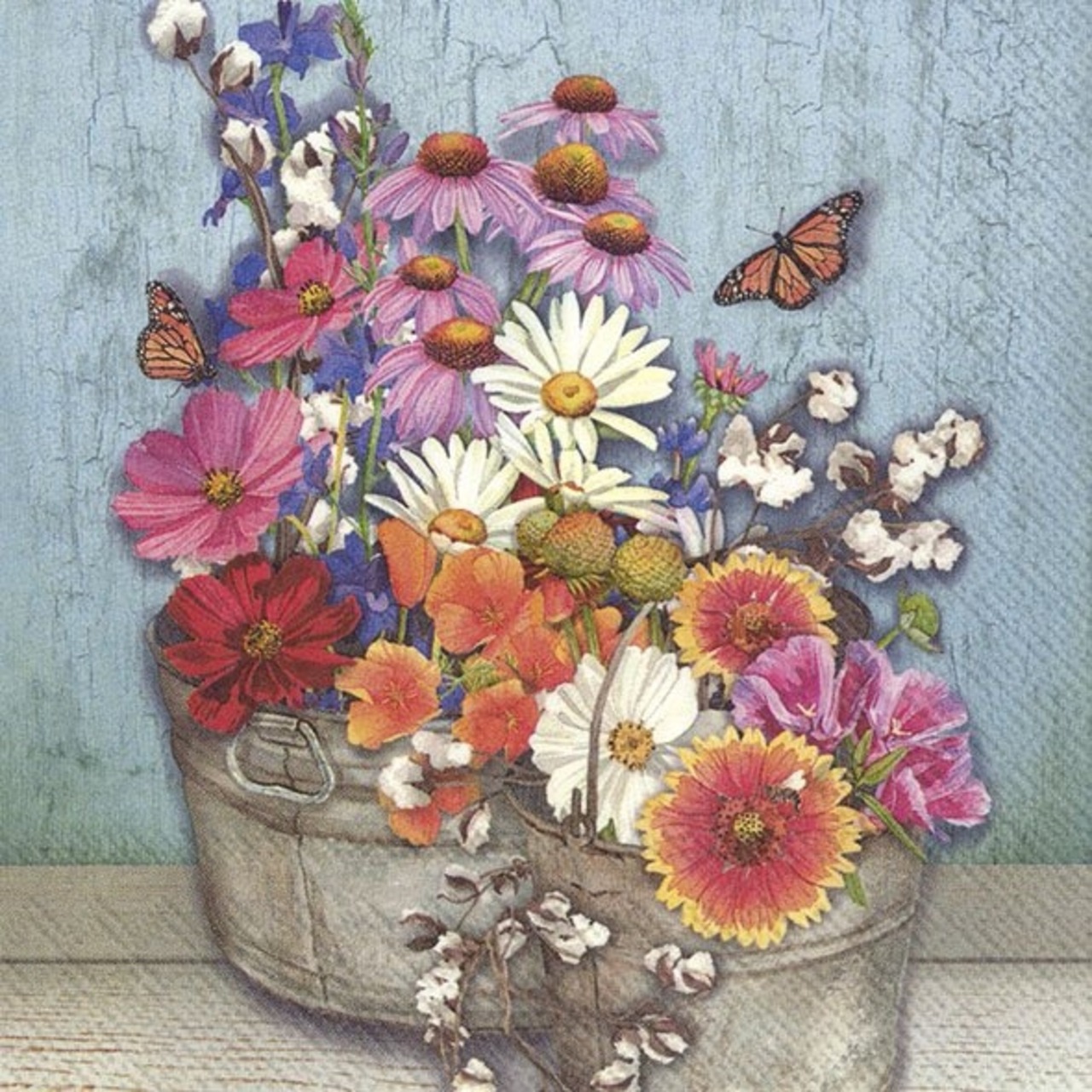 【IHR】バラ売り2枚 ランチサイズ ペーパーナプキン FLOWERS AT HOME グレー