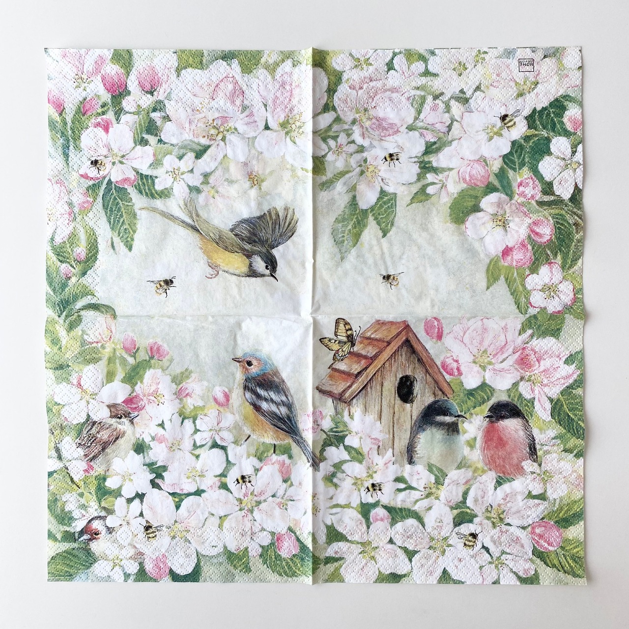 【Home Fashion】バラ売り2枚 ランチサイズ ペーパーナプキン Birds and Blossom ホワイト
