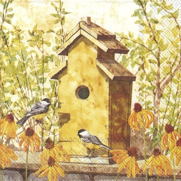 【IHR】バラ売り2枚 ランチサイズ ペーパーナプキン BIRDHOUSE IN FALL クリーム