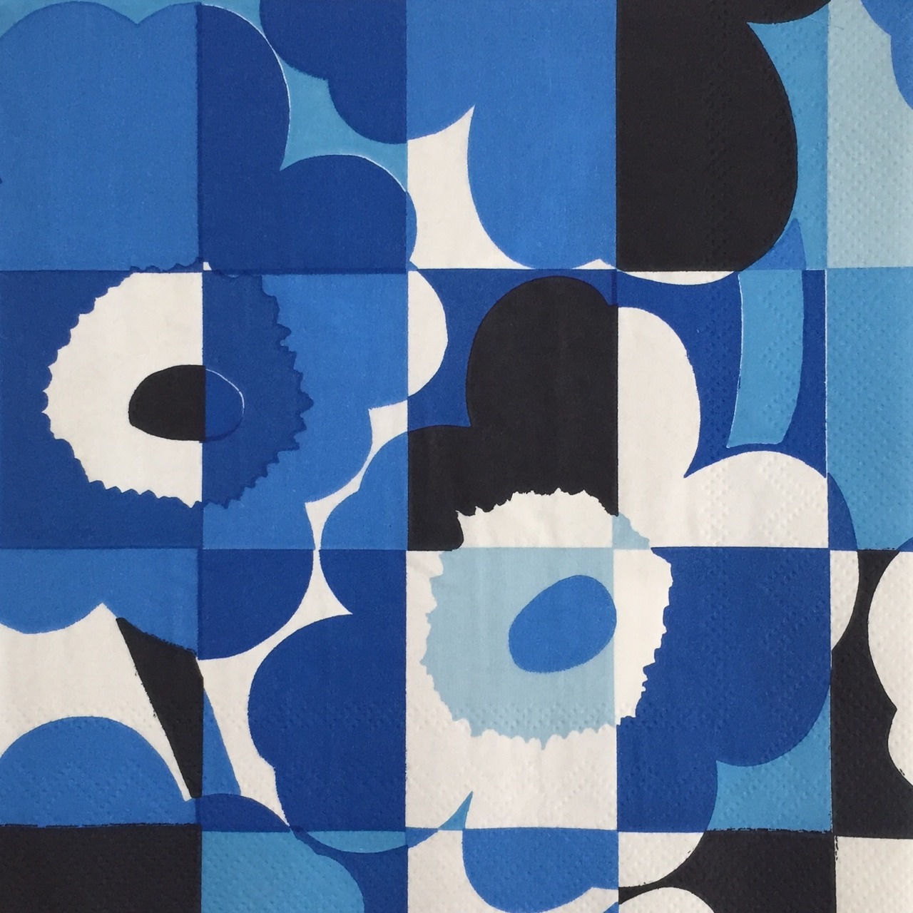 【marimekko】バラ売り2枚 ランチサイズ ペーパーナプキン MINI RUUTU UNIKKO ブルー