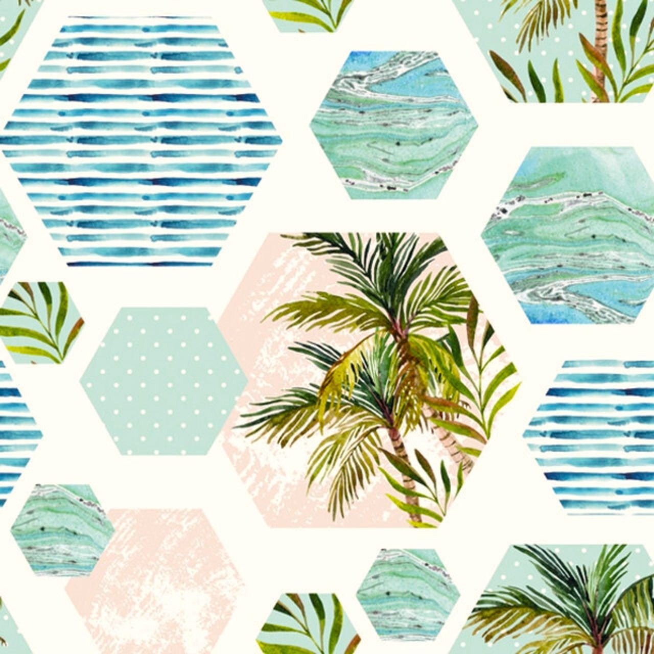 【Daisy】バラ売り2枚 ランチサイズ ペーパーナプキン Palms in Hexagons with Blue Background ホワイト