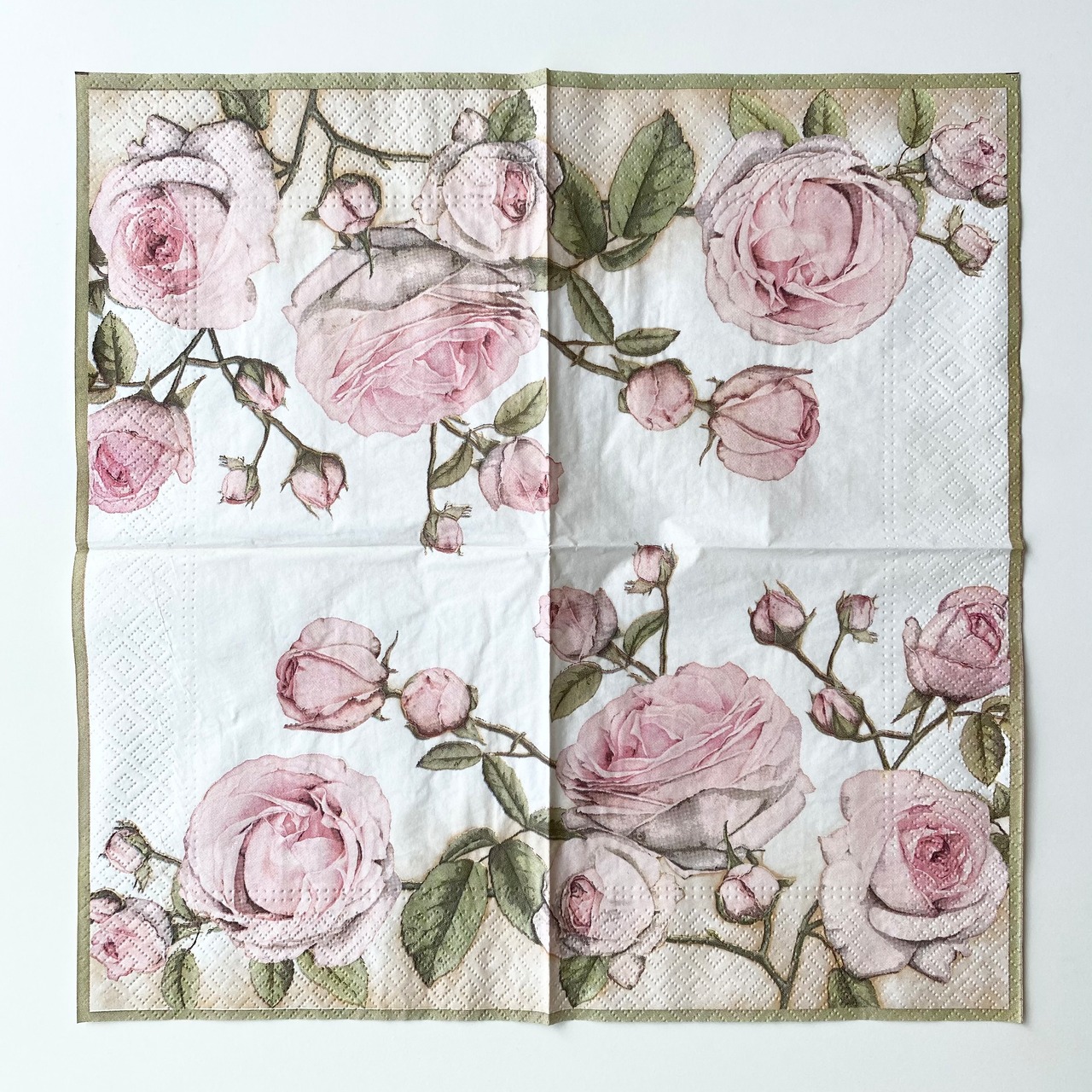 【PAW】バラ売り2枚 ランチサイズ ペーパーナプキン Beauty Roses クリーム